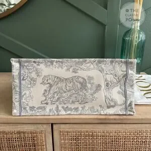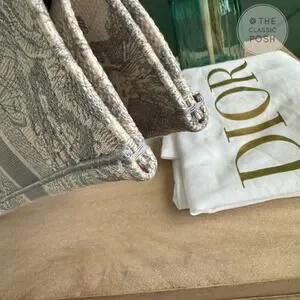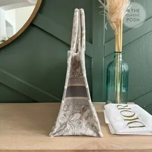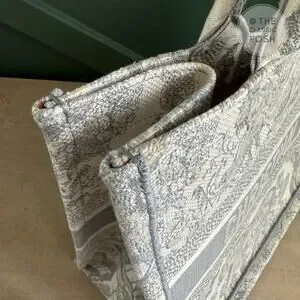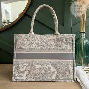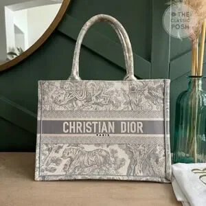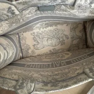 EUC Christian Dior Book Tote Toile De Jouy Ecru Gray Medium