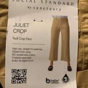 The Social Standard by Sanctuary Juliet Twill Crop pant will be your new favorite pant to wear all year long. Pair with a sandal for warmer weather, or a cute ankle boot when it's feeling chilly. This pant has perfect stretch, and has the ability to dress up for a dinner, or wear around the house and be the most classic, casual chic and fashion forward neighbor in the neighborhood.