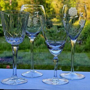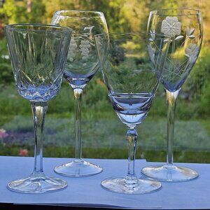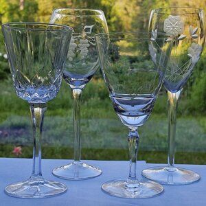 Mismatched Wine Glassware Collection set/4 vintage cut mixed cocktail glasses