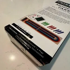 Includes: 1 deck of cards, 1 folding game board, 9 pegs, and an instruction manual.