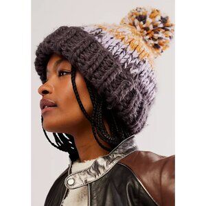FREE PEOPLE Tide Stripe Knit Pom Beanie / Coal
