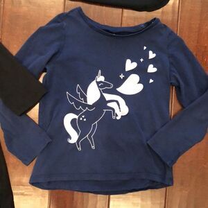 All in great condition, maybe worn twice. Stay true (blue) crazy 8 store (7-8 yrs) and black (meow) are quarter sleeves from Gymboree store (7-8 yrs) , black Dkny medium (fits 7-8 yrs) and blue unicorn from carters fits like the rest but marked size 10(runs smaller). Bundle includes all 4.