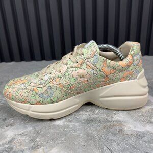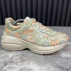 GUCCI Liberty Rhyton Floral Muticolor Canvas Sneaker Leather 8.5 US 38.5 EUR