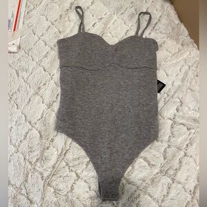 Grey sweater like material express body suit price tag not on it but tag needed for return is still on. Very good condition. Medium