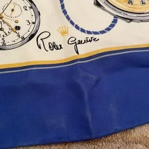 Geneve Swiss vintage silk scarf from Rolex. Excellent used condition. Only sign of wear is small patch of discoloration near the logo as depicted in photos. Does not have box.