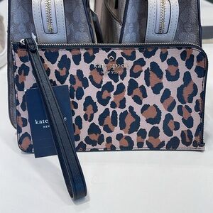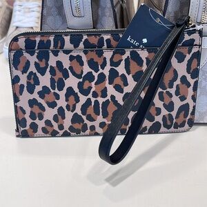 Kate Spade Lucy Leopard Medium L Zip Wristlet Brown Multi Leopard NWT
