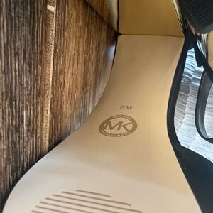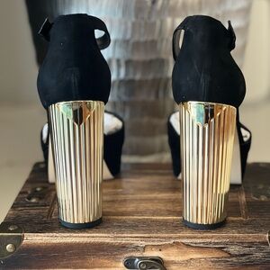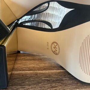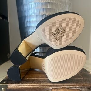 These NWOB MICHAEL Michael Kors pair a retro-inspired platform with a gold-tone, galvanized heel, and gorgeous ankle strap design.