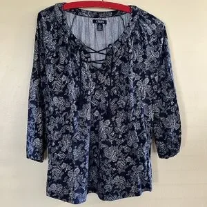 Chaps size medium navy tie front floral top