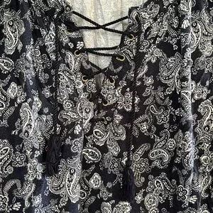 Chaps blue paisley floral tie front top