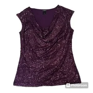 Ann Taylor size large women’s purple sequin scoop neck sleeveless top