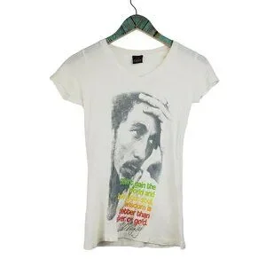 BOB MARLEY "Don't Gain The World And Lose Your Soul" White V-Neck T-Shirt Sz S