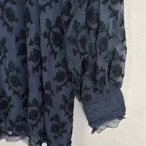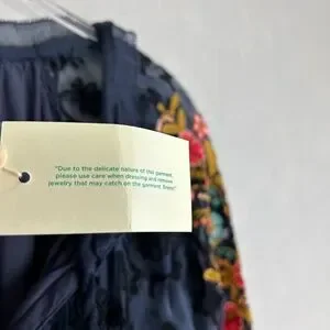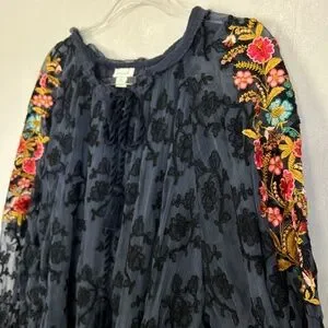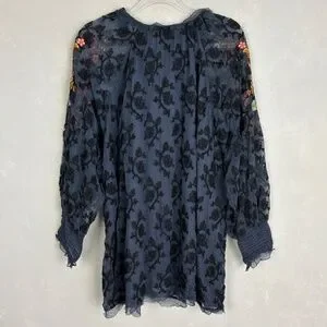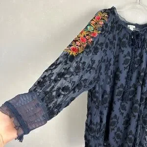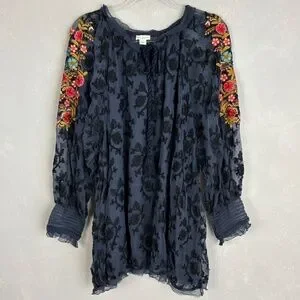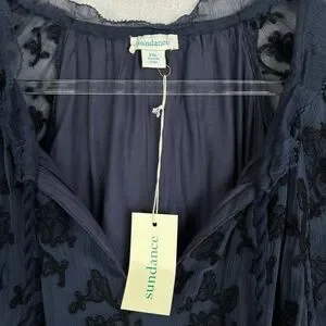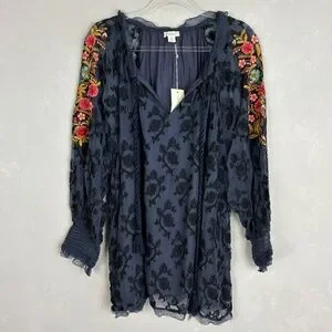 Sundance size XXL Gemma Elegance top long sleeve embroidered navy boho new with tags. Sheer sleeves lined body