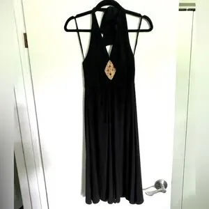 Black halter style Jones New York Dress with brown beaded detail.
