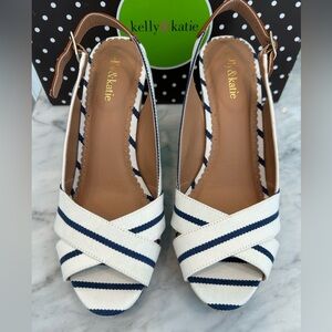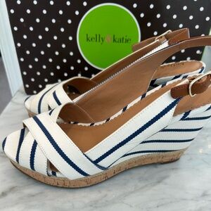 Kelly & Katie wedges blue and white striped NWT in box