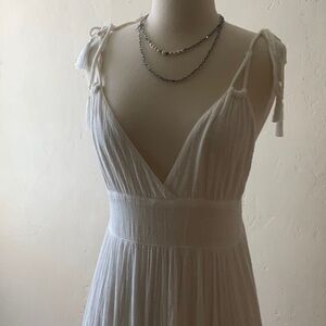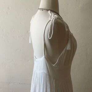 White, beautiful, classy and in good condition. Zippered back, tassel shoulder straps