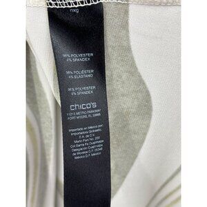 Chico's Travelers Swirl Print Stretch Blouse Top Olive Green Size 3 (16) XL