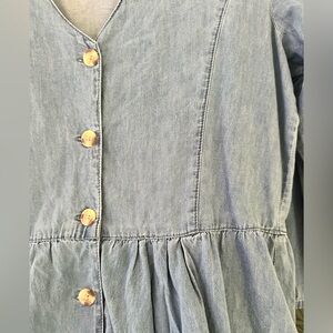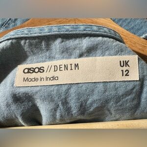 Lightweight long sleeved denim dress by ASOS. UK size 12, which is a US size 8. I’m 5’3” and it’s knee length in me. Cute for summer with sandals or fall with boots!