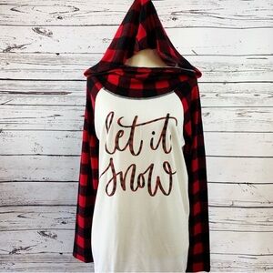 Boutique 'Let It Snow' Cowl Neck Hoodie w/ Plaid Sleeves Size Small