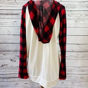 •cowl neck hoodie w/ red and black plaid sleeves