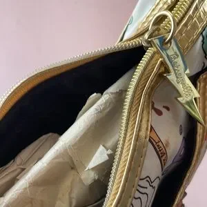I’ve had this Betsey Johnson bag in storage since the 2000’s. I’ve never used it, but it does have some storage discoloration as shown in photos. Might come out with Dawn dish soap and water scrubbed with a soft toothbrush? Look closely at photos for what you see is what you get. Thanks for looking!