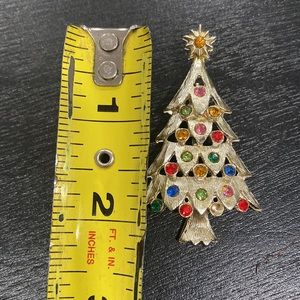 VINTAGE Multi Stone Gold Christmas Tree Pin Brooch