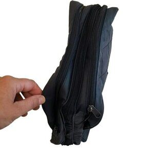 Features: adjustable & removable shoulder strap, large front zip close pockets, a large zip open main pocket & quilted sides, vinyl construction