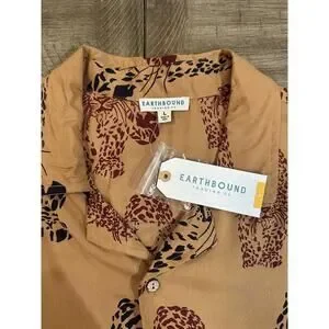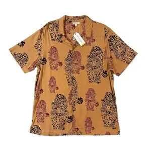 Earthbound Trading Co Short Sleeve Button Down Brown Leopard Shirt Size Large