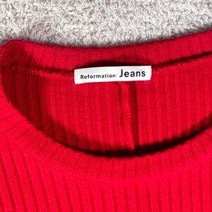 Reformation Jeans Ribbed Knit Mini Dress Bodycon Red Comfy Size Small Comfy Soft