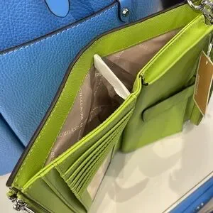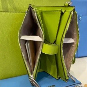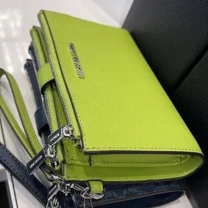 MICHAEL KORS LG DOUBLE ZIP WRISTLET Wallet Phone Case Holder Lime NWT