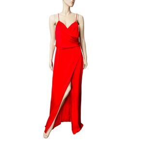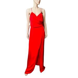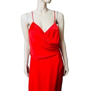 New Fame and Partners Red Maxi Gown Size 14 US Wrap top V-Neckline Front Open
