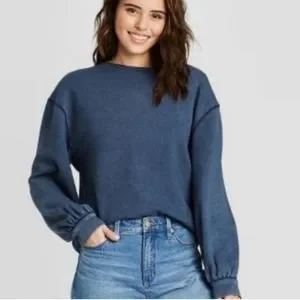 Universal Thread Women's Puff Sleeve Pullover Blue Casual Minimal Sweatshirt XL