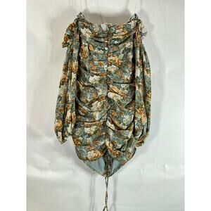 HELLO MOLLY Women's Sage Floral Basque Country Bodycon Ruched Dress SZ 4