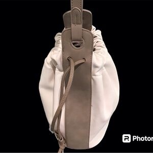 Universal Threads Bucket Bag NWOT White & Taupe Faux Leather