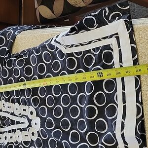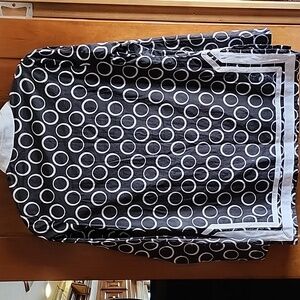 Michael by MK Light Long Sleeve Circle Print Black White Tunic, Size Small- see pics for measurements, Pretty V Neck Trimmed with Beading, Side Slits with trim around bottom & slits, Lightweight, Semi Sheer Material- perfect summer top, 100% Cotton, New Without Tags, Dog Friendly Home.