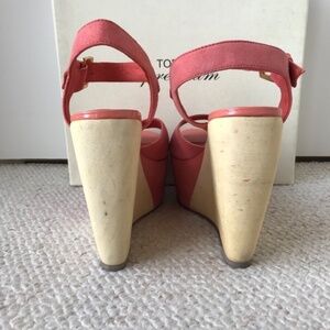 Topshop coral color block platform wood wedge sandal