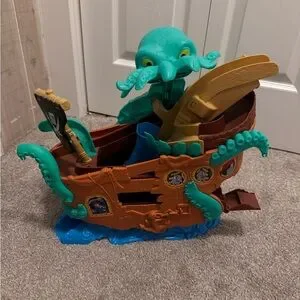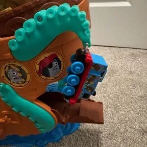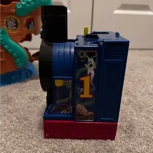 Thomas the train bundle includes: Thomas Adventures Sea Monster Pirate Set and Thomas the Train MINIS Spooktacular Pop-Up Playset is missing the green track that goes after the purple track other than that in excellent condition.