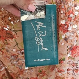 This is a NWT Mac Duggal Floral Print Sequined Puff Sleeve Gown Size 6.