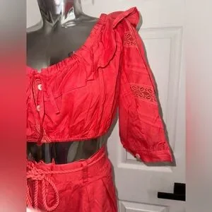 Free People Linen blend Crop Top & Pants Set small