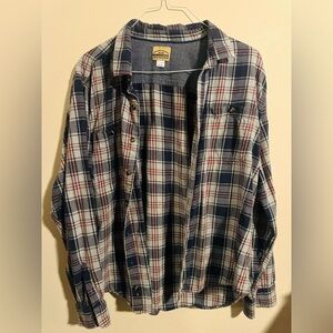 EUC Roebuck & Co Men’s Plaid Button Down Casual Dress Shirt - Long Sleeve - Buffalo Blue Red & White - Soft Cotton - Size XXL or 2X - or Women’s Boyfriend Shirt Size XXL or 3X