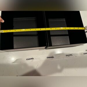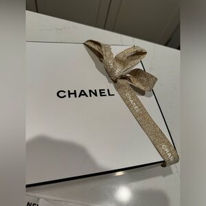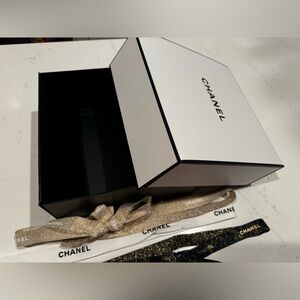 White and black Chanel gift box with gold sparkly, deep blue sparkly and white chanel ribbons!!!๐คฉ๐คฉ