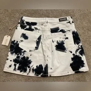NWT Women’s Shyanne Black and White Tie Dye Print Jean Denim Mini Skirt Size M