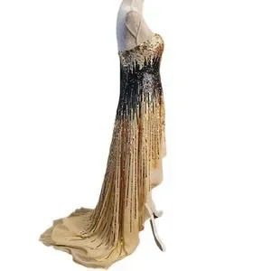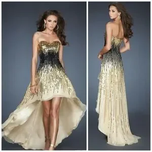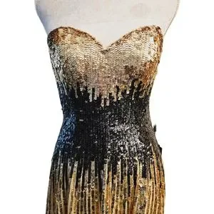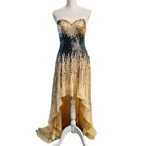 NWT La Femme Sherri Hill Strapless Sequin Hi Low Gown $657
