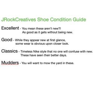 See Condition Guide in pictures. All pictures are of the actual shoes you are purchasing. These shoes do not come with the original box.