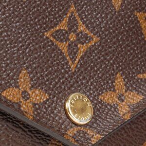 Expertly crafted from traditional Louis Vuitton monogram toile canvas, the Louis Vuitton Jeanne wallet in Rose Ballerine offers both style and functionality. Unsnap the envelope style front flap to reveal a partitioned cross-grain leather interior with card slots. Plus, the orange card holder and navy blue zipper insert provide additional organization options.