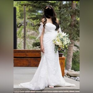 @b_madlynn I forgot to add into the description but I had it altered twice as I was 5 months pregnant at my wedding. I’ve added some pictures of the dress on :) here’s the measurements Bust 15"