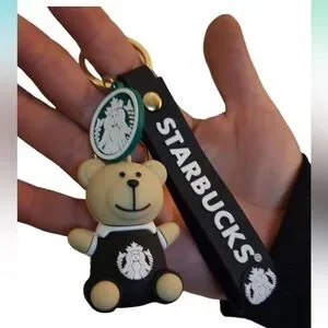 Starbucks Bear Cup Keyrings Chain Soft Silicone Keychain Wristband Strap Bag Key