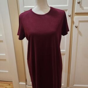 Maroon, Soft and Sleek, Short-sleeved, Mini, Polyester, Lined Dress In Excellent Condition, Looks Great On 😆 Perfect for size Medium or Large