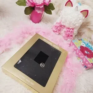Black with black sequin & Michael Kors charm logo.