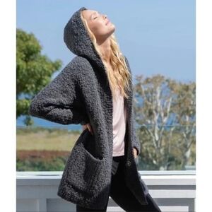 Barefoot Dreams Boucle Hooded Cardigan Carbon Gray Open Front Sz S / M