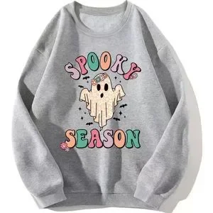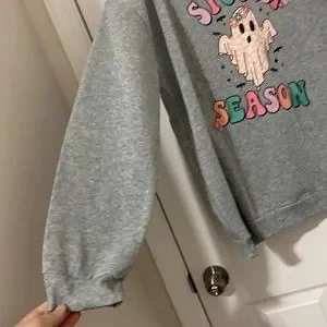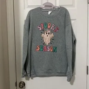 This is a brand new and never been worn Crewneck pullover sweater that is absolutely adorable and perfect for Halloween. It is a light grey color and features an adorable retro ghost graphic. The inside is super soft and warm as well.